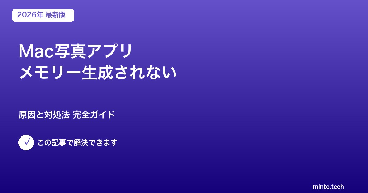 Home / Apple / Mac / 【2026年最新版】Macの写真アプリでメモリーが生成されない・表示されない原因と対処法【完全ガイド】