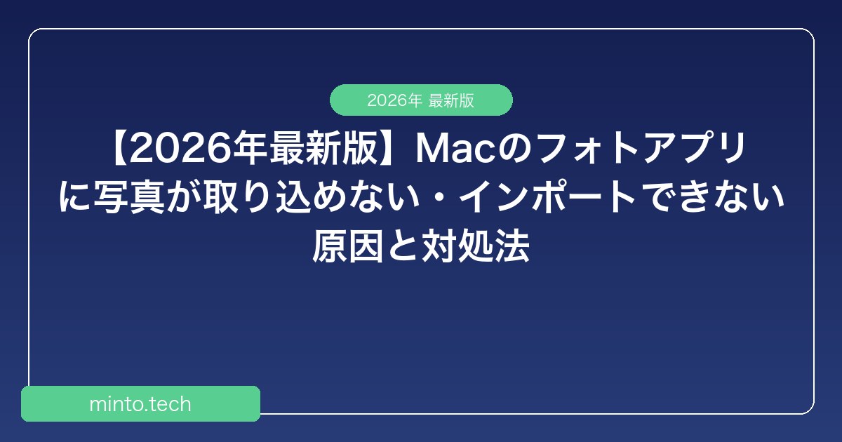 Home / Apple / Mac / 【2026年最新版】Macのフォトアプリに写真が取り込めない・インポートできない原因と対処法