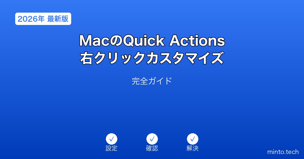 この記事では、MacのQuick Actionsの使い方とカスタマイズ方法を完全網羅して解説します。標準機能の使い方からAutomatorを使ったカスタムアクションの作成まで、初心者の方でもわかるよう丁寧に説明します。