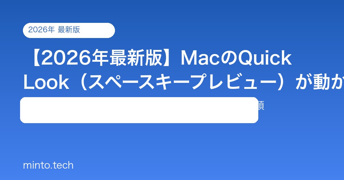 MacのFinderでファイルを選択してスペースキーを押しても何も起きない、Quick Lookのプレビューが表示されない、特定のファイル形式だけプレビューできないという問題が起きていませんか?