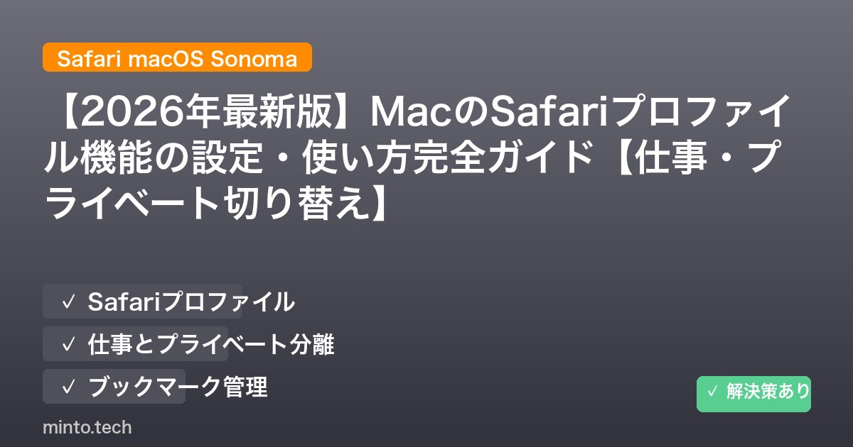 この記事では、Safariプロファイルの作成方法から切り替え方法、管理できる要素、iPhoneとの同期設定、そしてトラブル対処法まで、徹底的に解説します。2026年最新のmacOS環境に対応した完全ガイドです。
