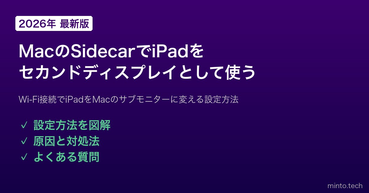 【2026年最新版】MacのSidecar(サイドカー)でiPadをセカンドディスプレイとして使う方法【完全ガイド】
