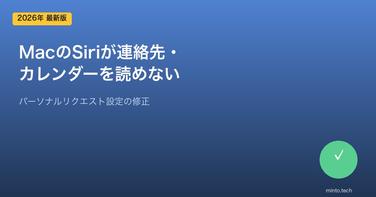 【2026年最新版】MacのSiriがパーソナルリクエスト(連絡先・カレンダー)を読み取れない原因と対処法【完全ガイド】