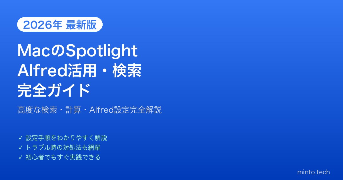【2026年最新版】MacのSpotlight検索・Alfred活用完全ガイド【生産性向上】