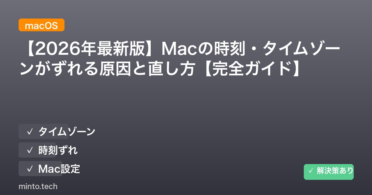 本記事では、Macの時刻・タイムゾーンがずれる原因から、具体的な対処法まで丁寧に解説します。初心者の方でも手順通りに進めるだけで解決できます。