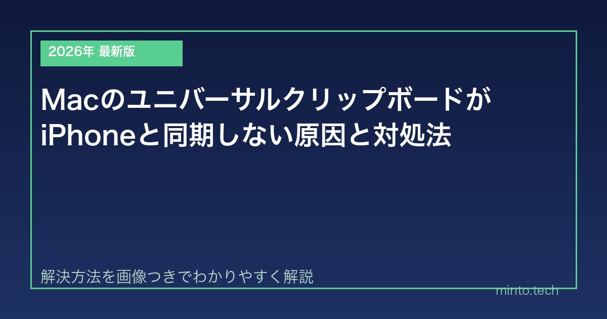 Home / Apple / Mac / 【2026年最新版】MacのユニバーサルクリップボードがiPhoneと同期しない原因と対処法【完全ガイド】