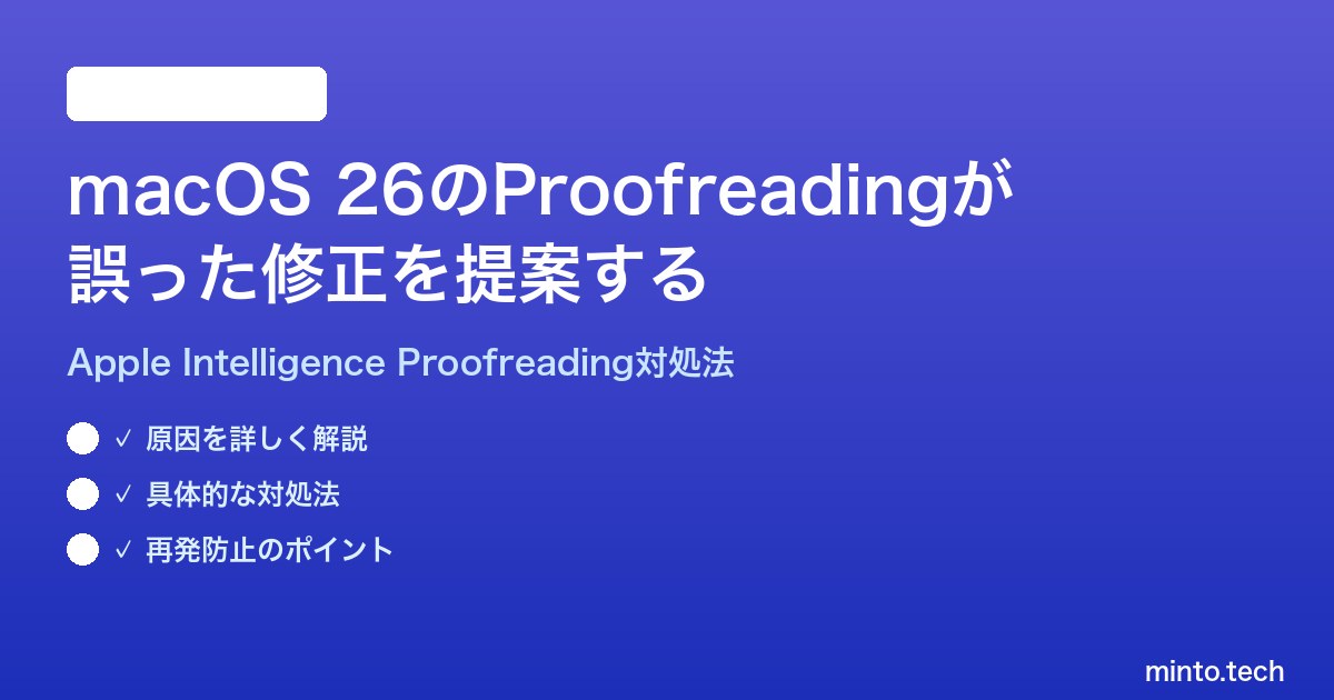 macOS 26のApple IntelligenceのProofreadingが誤った修正を提案する場合の対処法をまとめます。