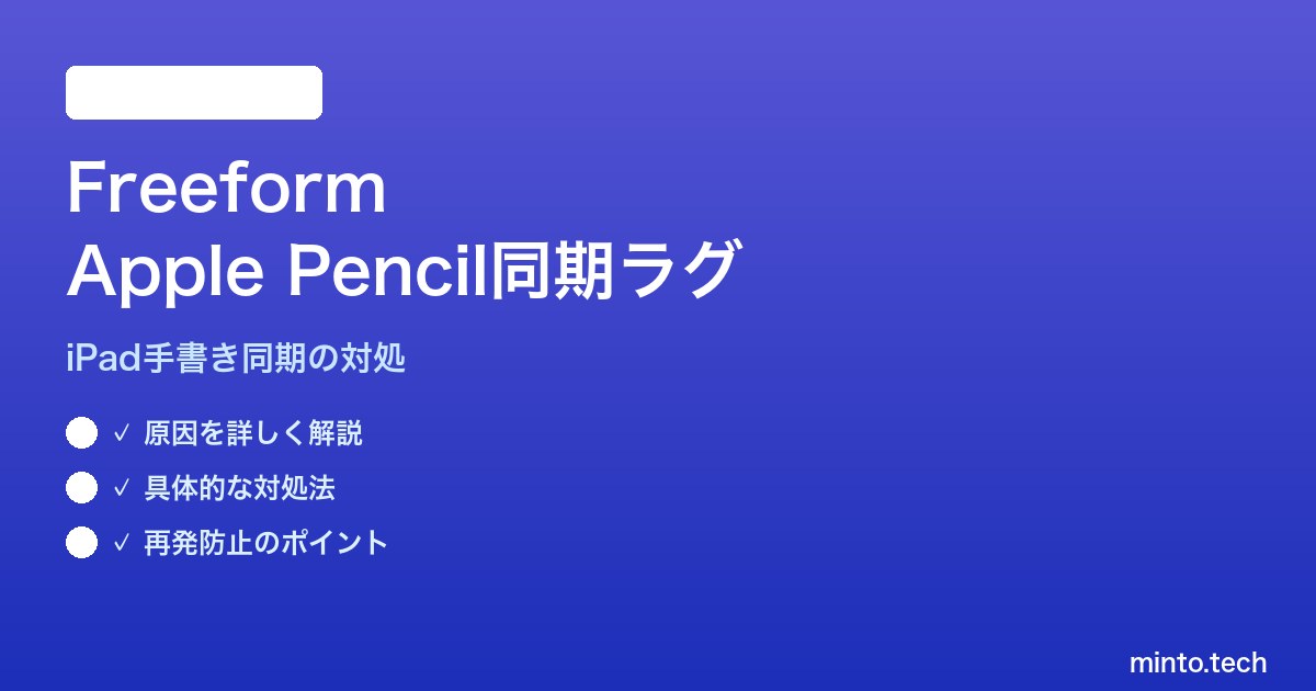FreeformボードのiPad→Mac同期ラグは、ほぼすべてのケースで「ネットワーク・iCloud設定・ボードサイズ・ローカル処理」の4要素のどれかに原因があります。以下の優先順位で対処してみてください。