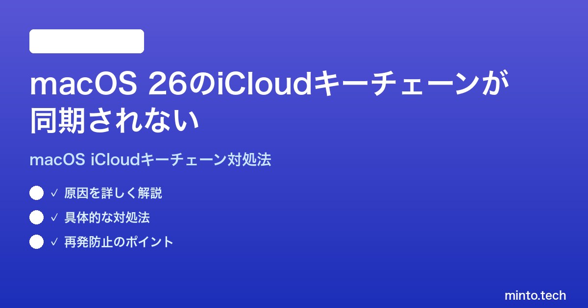 Home / Apple / Mac / 【2026年最新版】macOS 26のiCloudキーチェーンが同期されない時の対処法【完全ガイド】