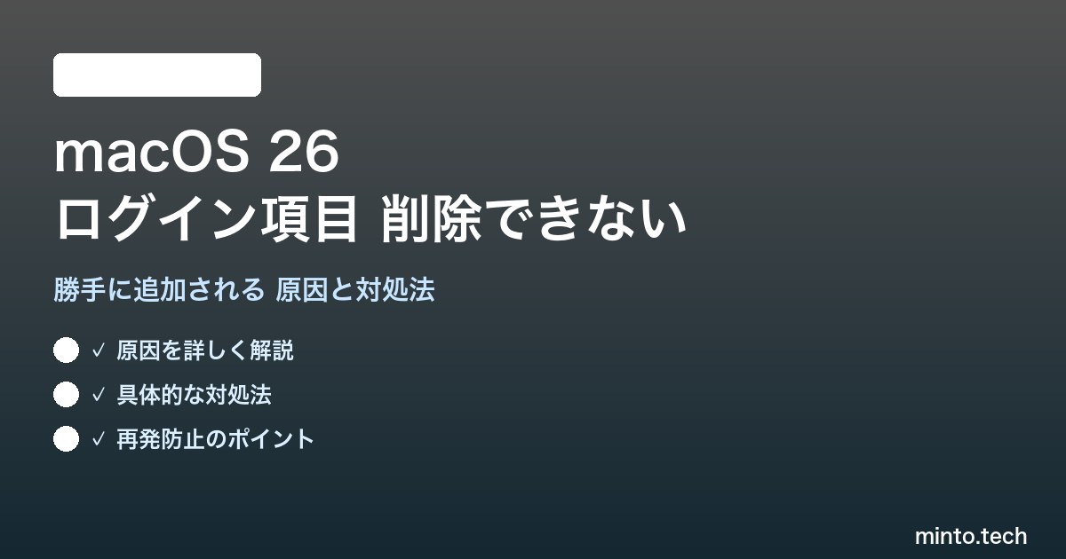 この記事では、macOS 26でログイン項目が削除できない原因を徹底的に解説し、確実に不要なログイン項目を除去する方法を初心者にもわかりやすくステップバイステップでご紹介します。