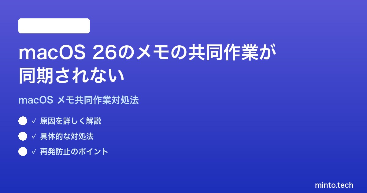 Home / Apple / Mac / 【2026年最新版】macOS 26のメモアプリの共同作業が同期されない時の対処法【完全ガイド】