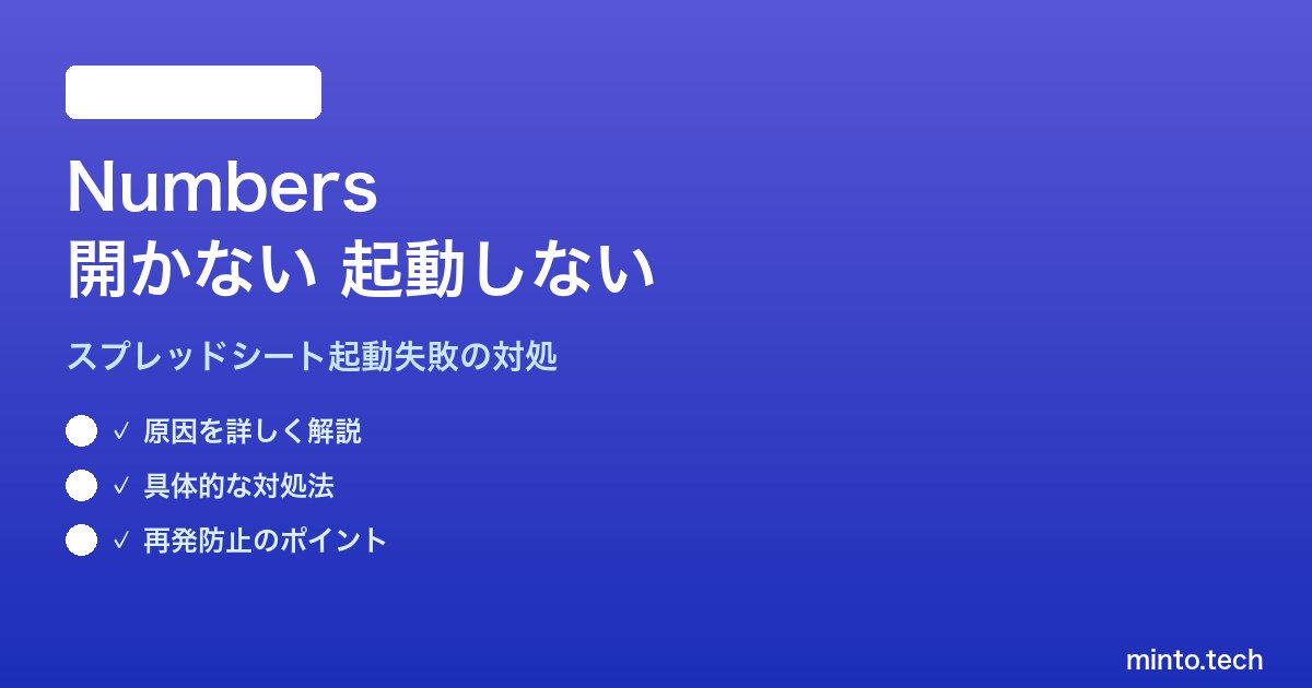 | Numbersアプリ自体が起動しない | アプリの破損・macOS権限エラー・キャッシュ不整合 |