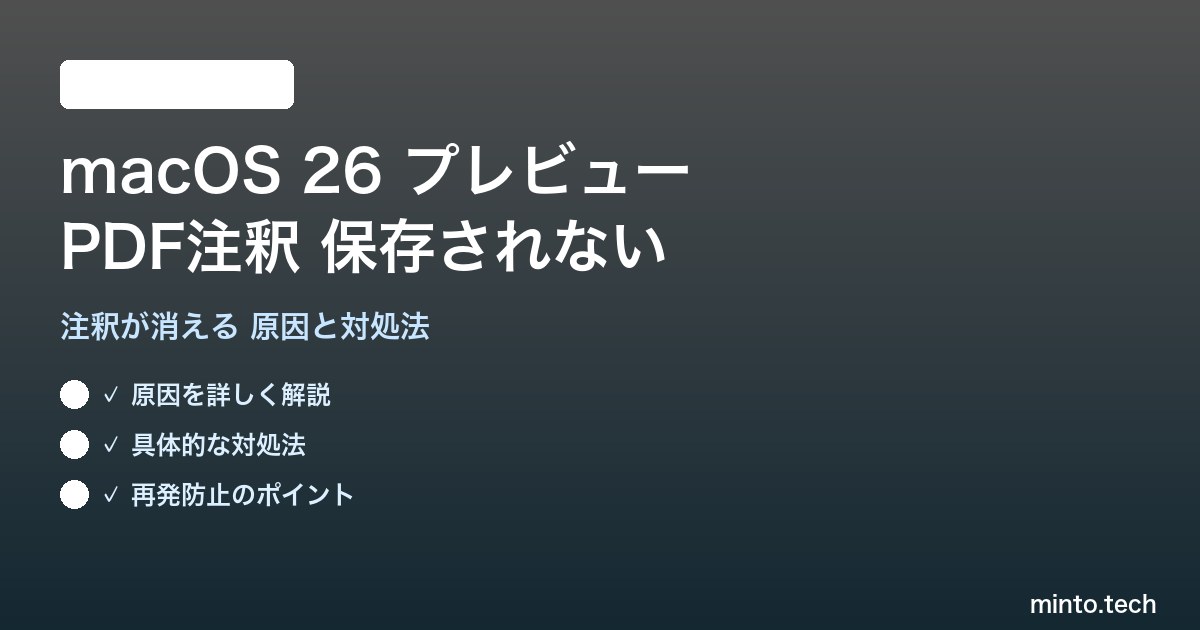 この記事では、macOS 26のプレビューでPDF注釈が保存されない・消える原因を徹底的に解説し、初心者の方でもすぐに実践できる具体的な対処法をステップバイステップでご紹介します。