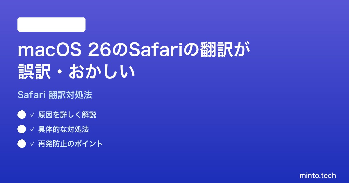 - macOS 26のSafari翻訳が誤訳・動作しない原因