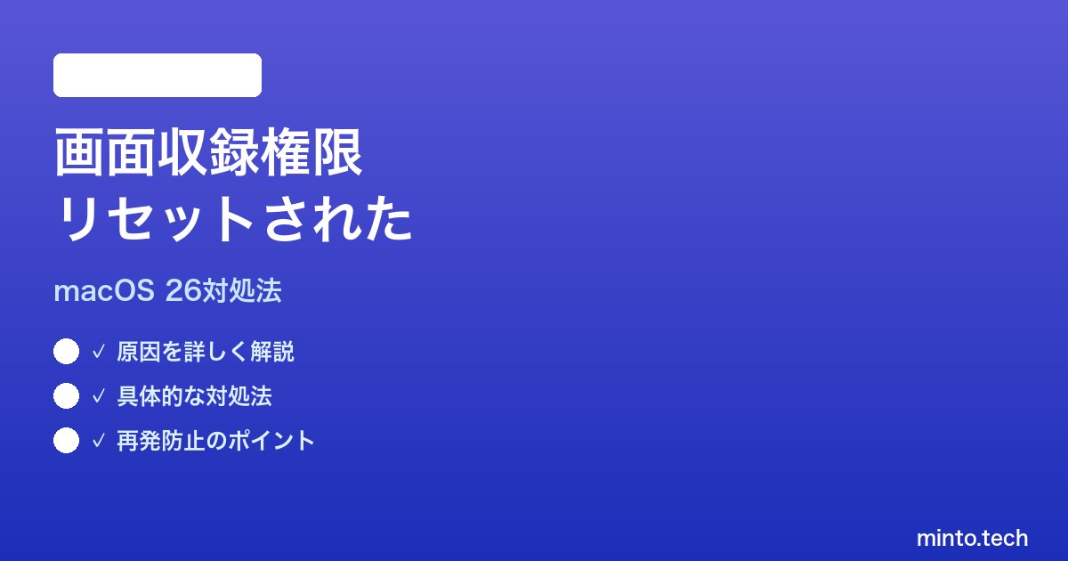 Home / Apple / Mac / 【2026年最新版】macOS 26のアップデート後に画面収録の権限がリセットされる時の対処法【完全ガイド】