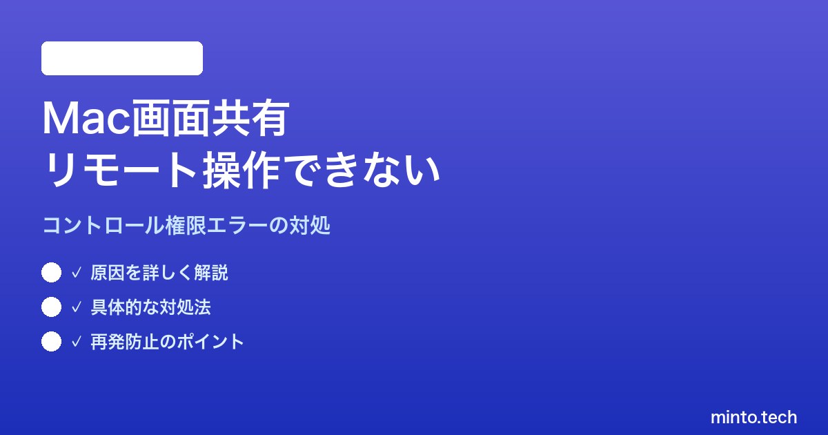 【2026年最新版】Macの画面共有でリモートコントロール(操作権限)が機能しない対処法【完全ガイド】