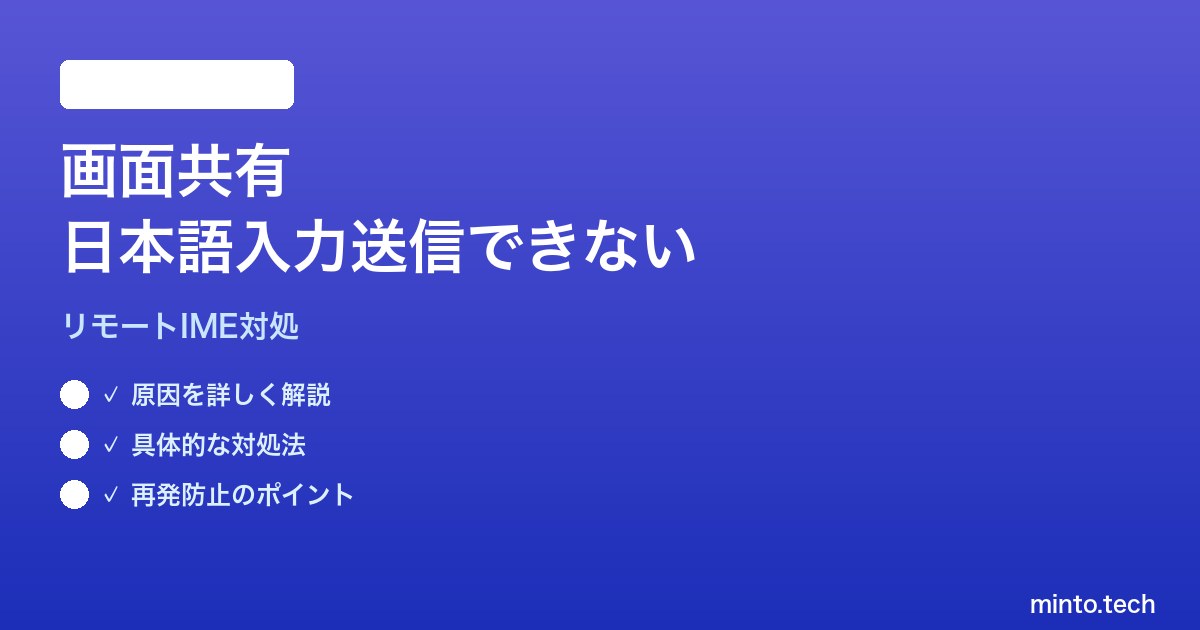 この問題は単なるバグではなく、Apple純正の画面共有が「キーストロークそのもの」を送信する設計と、ローカル側のIME(日本語入力プログラム)の処理タイミングが噛み合っていないことが本質的な原因です。本記事では、画面共有でリモートMacに日本語が送られない問題を、原因から代替手段まで網羅的に解説します。