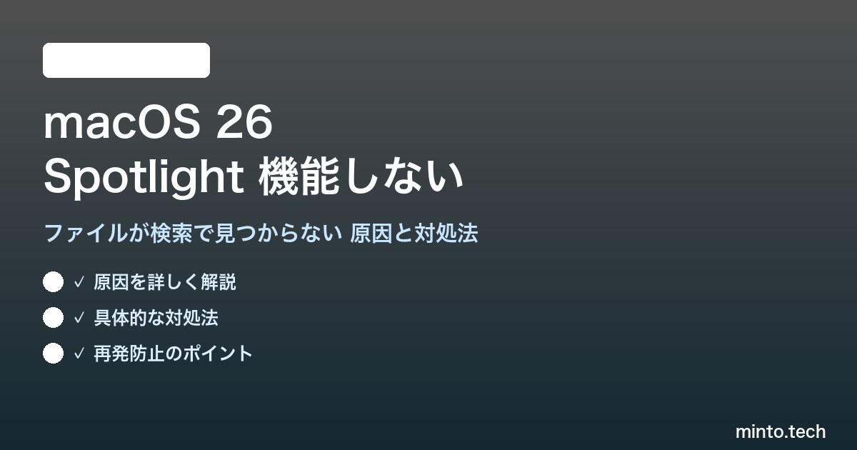 Home / Apple / Mac / 【2026年最新版】macOS 26のSpotlight検索が機能しない・ファイルが見つからない原因と対処法【完全ガイド】