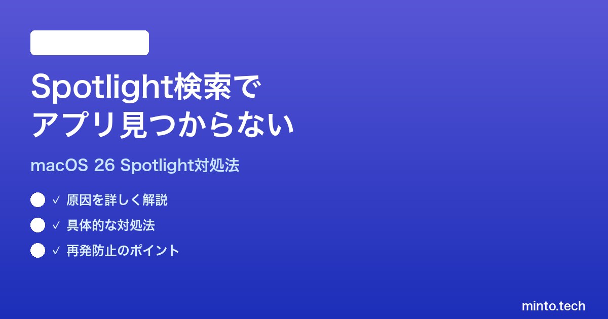 macOS 26でSpotlight検索がアプリを見つけられない問題は、主に以下の3つの原因から発生します:
