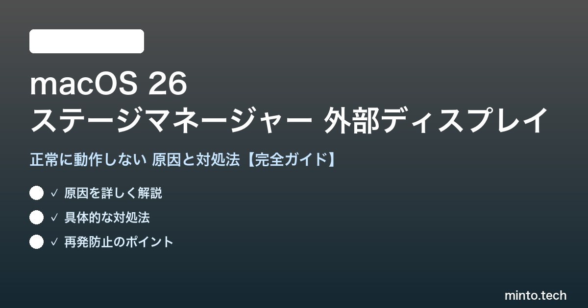 Home / Apple / Mac / 【2026年最新版】macOS 26のステージマネージャーで外部ディスプレイが正常に動作しない原因と対処法【完全ガイド】
