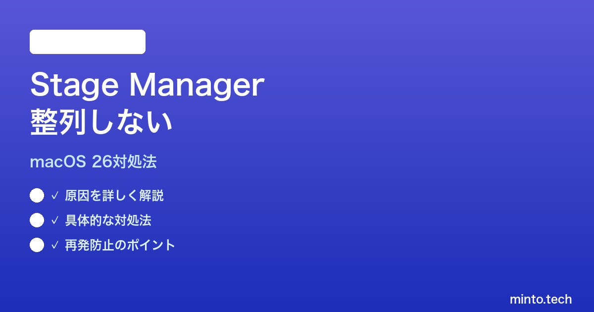 本記事では、macOS 26のStage Managerでウィンドウが正しく整列・グループ化されない問題の原因と解決策を網羅的に解説します。マルチウィンドウ作業の効率を取り戻したい方は、ぜひ参考にしてください。