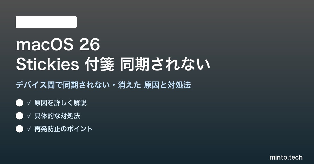 Home / Apple / Mac / 【2026年最新版】macOS 26の付箋(Stickies)がデバイス間で同期されない・消えた原因と対処法【完全ガイド】