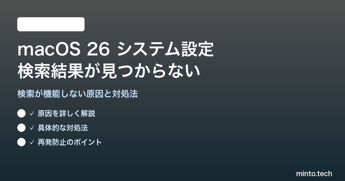 Home / Apple / Mac / 【2026年最新版】macOS 26のシステム設定で検索結果が見つからない原因と対処法【完全ガイド】