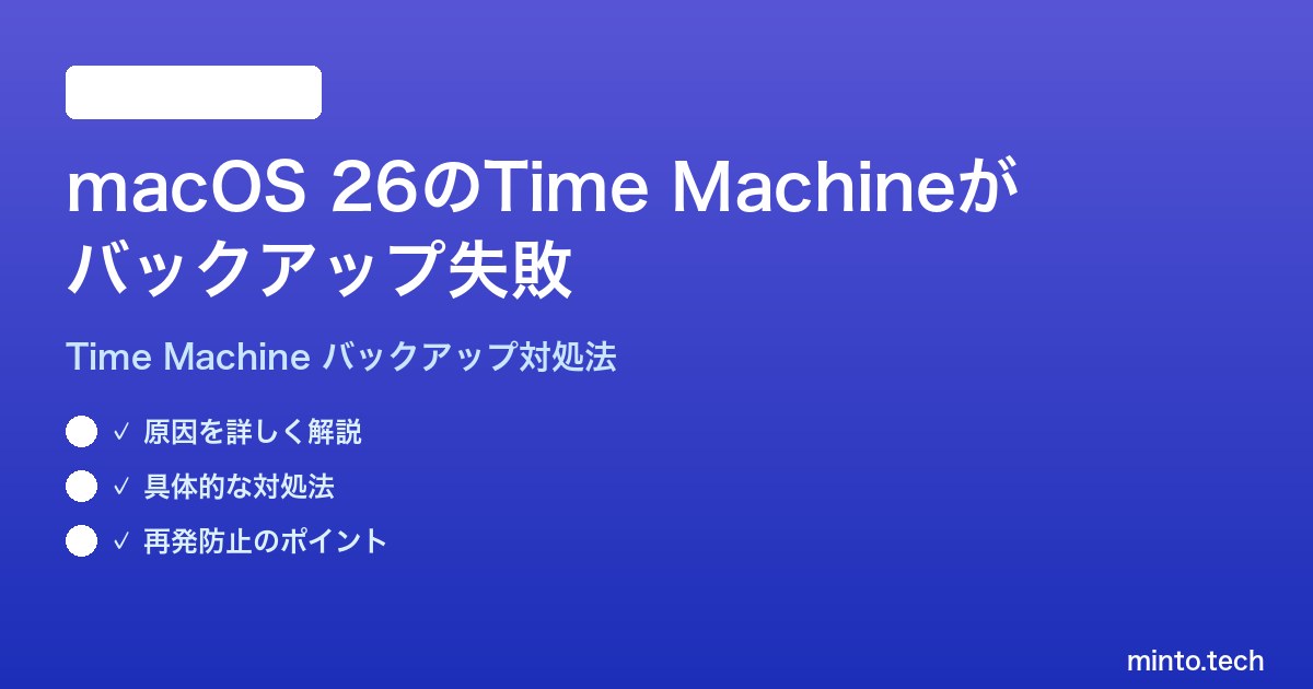 Home / Apple / Mac / 【2026年最新版】macOS 26のTime Machineのバックアップが失敗する時の対処法【完全ガイド】