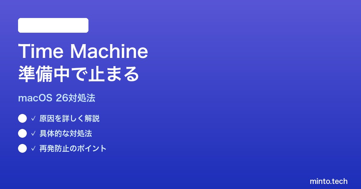 - macOS 26でTime Machineバックアップが「準備中」のまま止まる原因