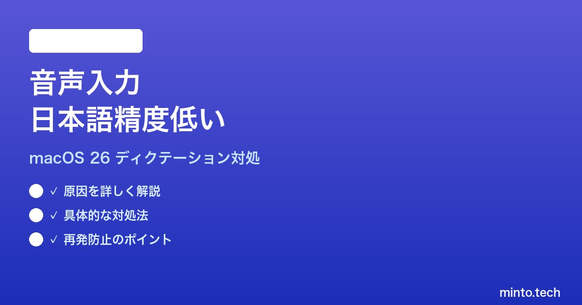 - macOS 26の音声入力(ディクテーション)で日本語の精度が低くなる原因
