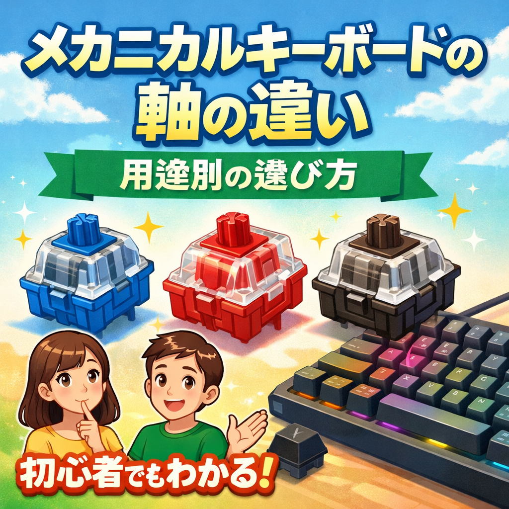 この記事のポイント メカニカルキーボードの「軸」選びは、結局のところ ①音の許容度(家族・同僚に迷惑にならないか)、②指への負担(軽さ・重さ)、③押し心地の好み(引っかかりが欲しいか)の3点でほぼ決まります。本記事では、軸の種類・スペックの読み方・用途別のおすすめ・2025年注目の磁気式スイッチ・予算別の具体的な製品・メンテナンスと静音化テクニックまで、IT初心者でもわかるようにすべてを網羅しています。