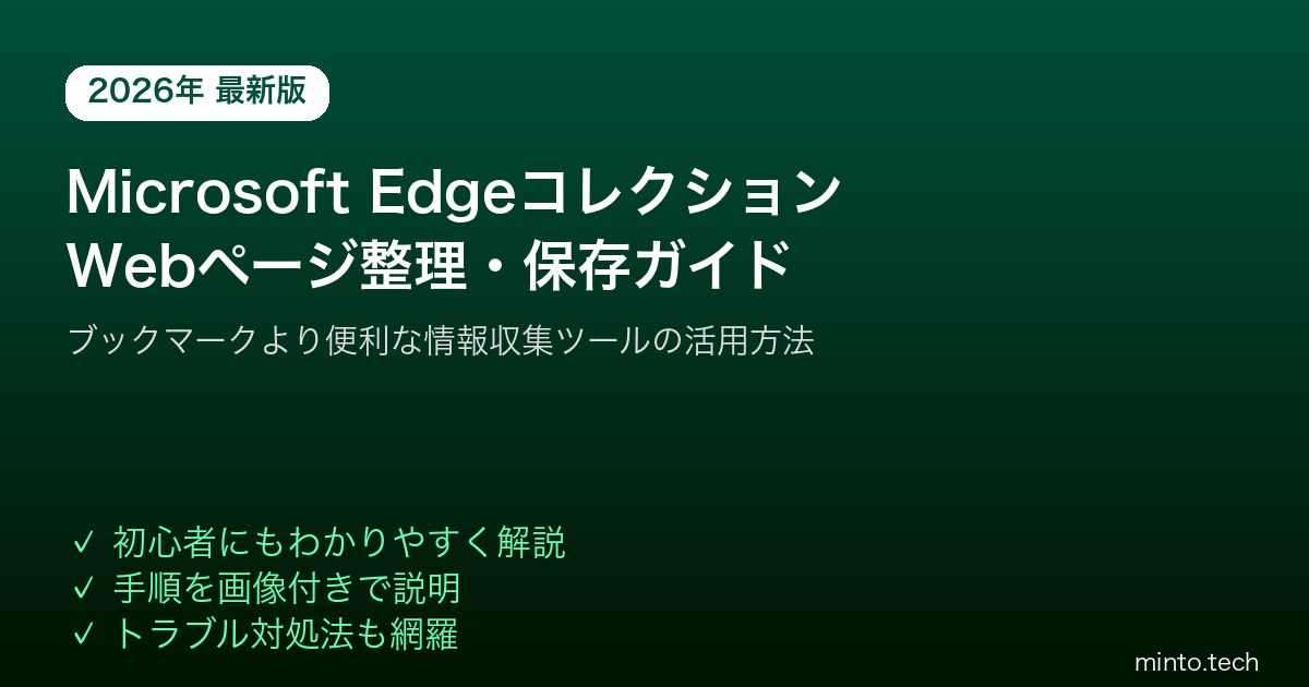 【2026年最新版】Microsoft Edgeのコレクション機能でWebページを整理・保存する方法【完全ガイド】