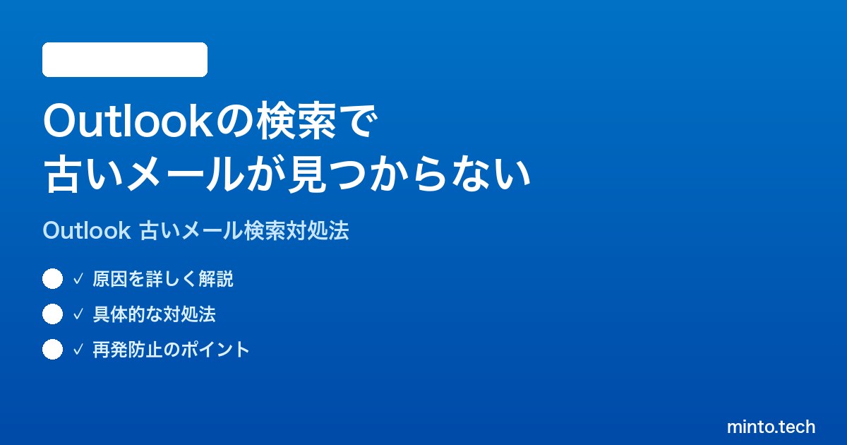 Outlookで古いメールが検索できない問題の主な原因と対処法をまとめると次のようになります。