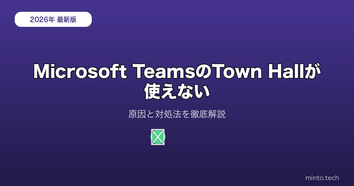 Microsoft TeamsのTown Hall(タウンホール)は、数千人規模のオンラインイベントやウェビナーを開催できる大規模配信機能です。しかし「Town Hallのオプションが表示されない」「機能が使えない」というトラブルが多く報告されています。本記事では、Town Hallが使えない原因と対処法を徹底解説します。