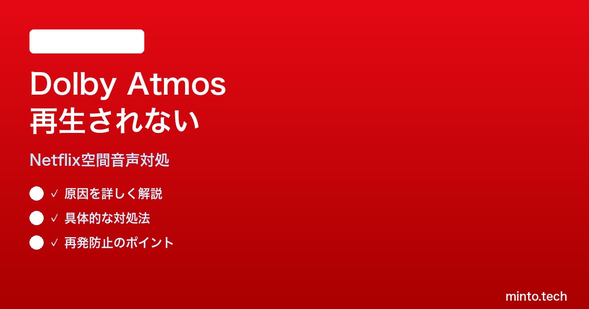 NetflixでDolby Atmosが再生されない問題は、プラン・コンテンツ・デバイス・音声出力システムの4つの条件のいずれかが欠けている場合に発生します。