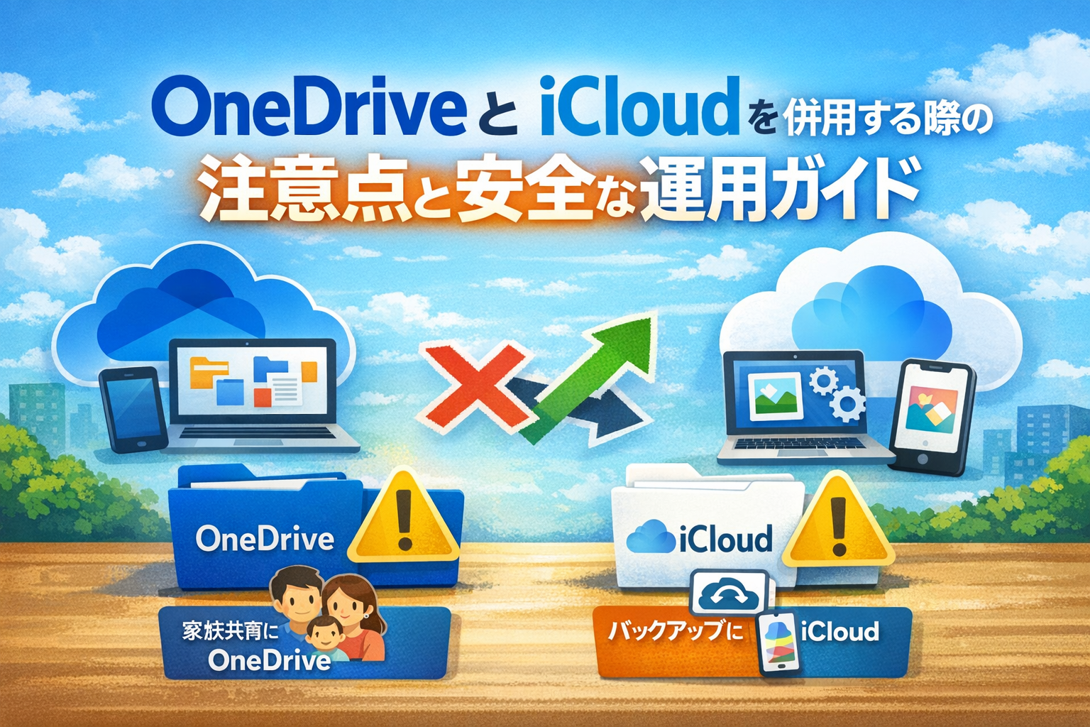 でも実は、何も考えずに併用すると、「写真が二重に保存されて容量がパンク」「ファイルが消えた!」といったトラブルが起きることも。この記事では、OneDriveとiCloudを安全に併用するための注意点と、初心者でも迷わない使い分けのコツを徹底解説します。