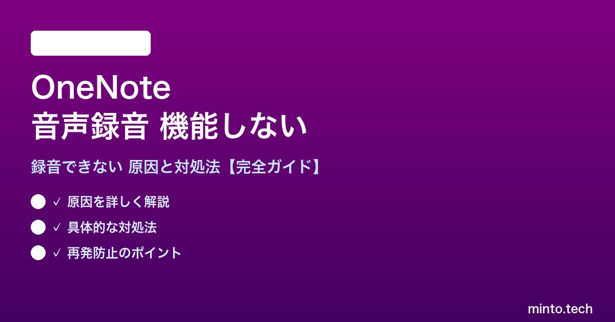 Home / Microsoft / 【2026年最新版】OneNoteの音声録音が機能しない・録音できない原因と対処法【完全ガイド】