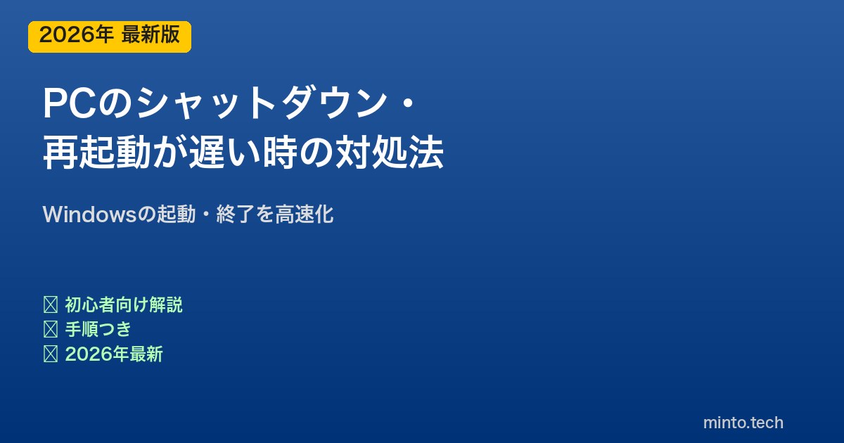 【2026年最新版】PCのシャットダウン・再起動が遅い時の対処法【完全ガイド】