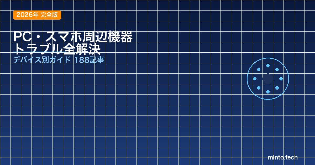 パソコンやスマホの周辺機器で「繋がらない」「認識しない」「設定がわからない」といったトラブルに悩んでいませんか?キーボード、マウス、モニター、プリンター、イヤホン、ウェブカメラ、ゲーミングデバイスからスマートホーム機器まで、デジタルライフで発生するあらゆる周辺機器トラブルの解決策を1ページに集約しました。本記事では、minto.techに掲載されている188本の周辺機器関連記事を、デバイスの種類別に整理してご紹介します。お困りの症状に合った記事をすぐに見つけて、問題をサクッと解決しましょう!