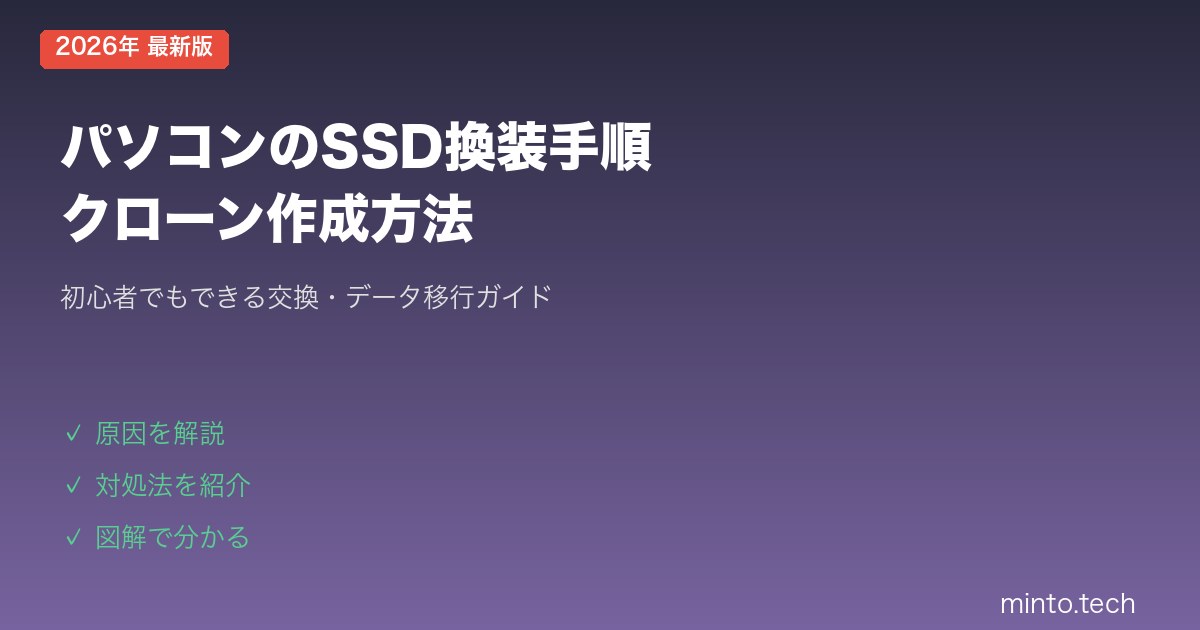 【2026年最新版】パソコンのSSD換装手順とクローン作成方法【初心者向け完全ガイド】