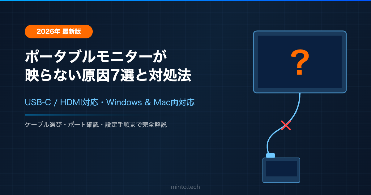 Home / Apple / Mac / 【2026年最新】ポータブルモニターが映らない原因7選と対処法【USB-C/HDMI対応】