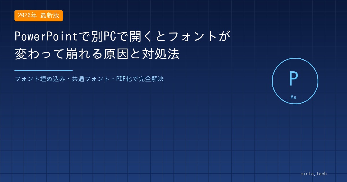 実はこの問題、PowerPointの「フォント埋め込み」機能を正しく設定するだけで、ほぼ100%防ぐことができます。この記事では、フォントが崩れる原因を徹底的に解説し、二度と同じトラブルに悩まされない対策方法を初心者の方にもわかりやすくお伝えします。