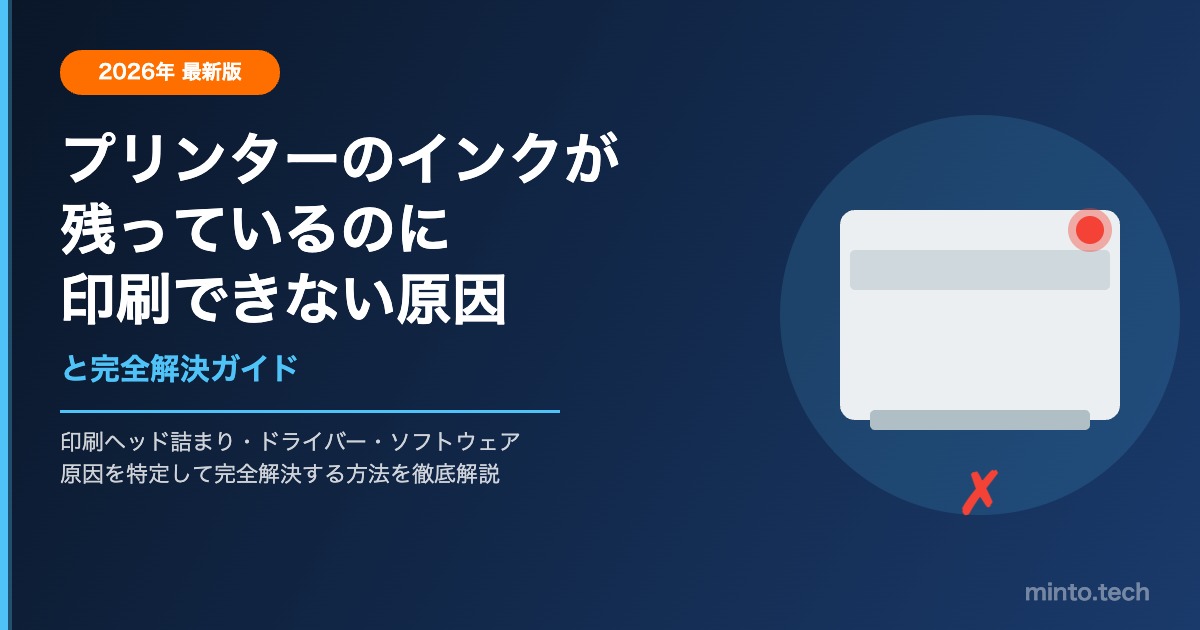 インクカートリッジの残量は十分あるのに、なぜかプリンターが印刷できない——このトラブルに困った経験がある方は少なくないはずです。「インクが残っているのになぜ?」と思うのは当然ですが、実は印刷できない原因の多くはインク切れ以外の別の問題です。この記事では、インクが残っているのに印刷できない7つの原因と、それぞれの具体的な解決方法をステップごとに丁寧に解説します。