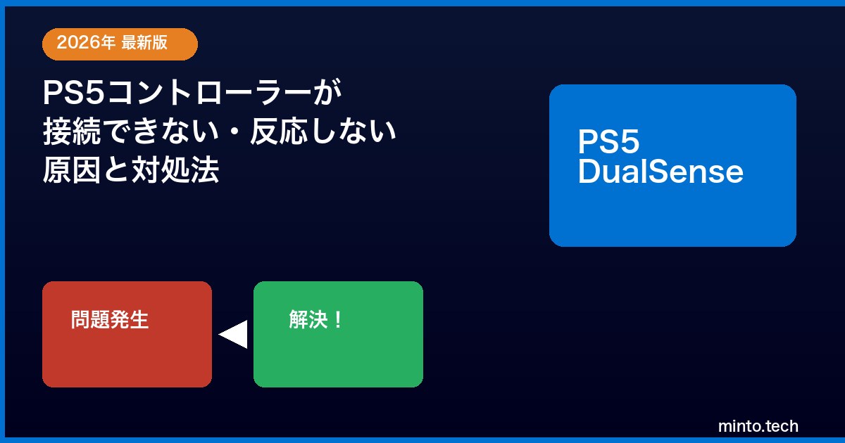 PS5のDualSenseコントローラーが接続できない・反応しないトラブルの原因と対処法をまとめます。