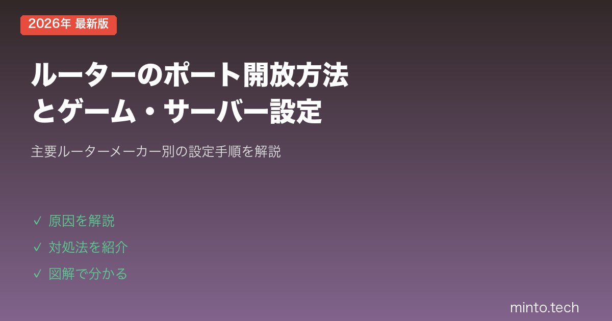 【2026年最新版】ルーターのポート開放方法とゲーム・サーバー設定【完全ガイド】