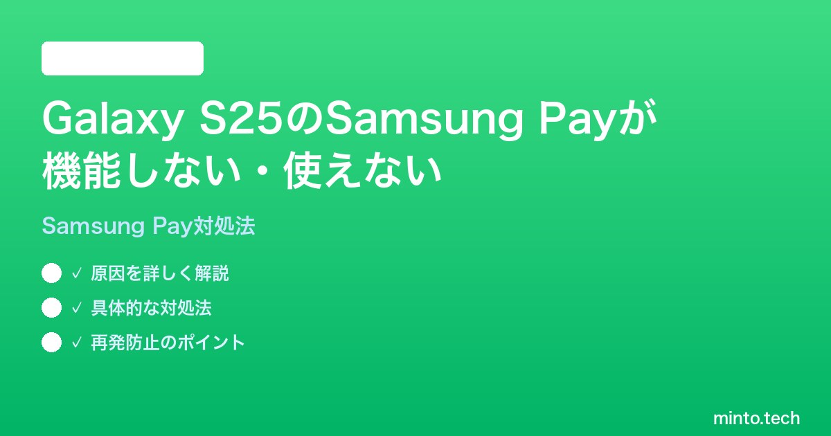 【2026年最新版】Samsung Galaxy S25のSamsung Payが機能しない・使えない時の対処法【完全ガイド】
