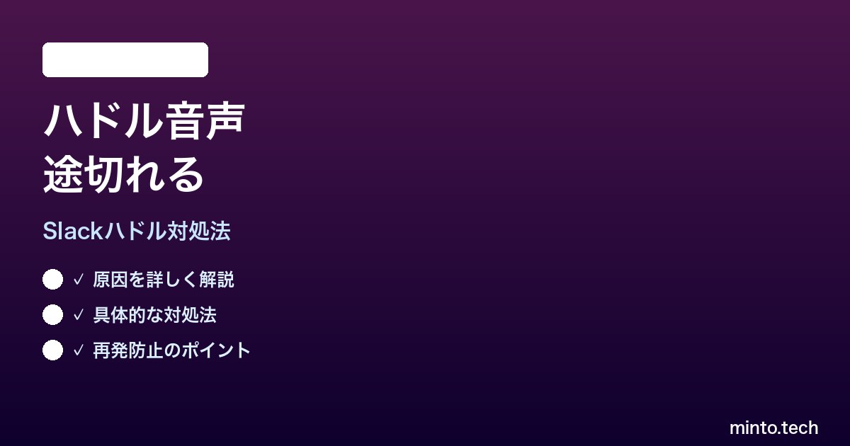 Slackハドルの音声途切れは、Slackのオーディオデバイス設定の不整合・ネットワーク帯域幅不足・アプリのキャッシュ問題・OSのオーディオドライバー設定などが複合して発生します。