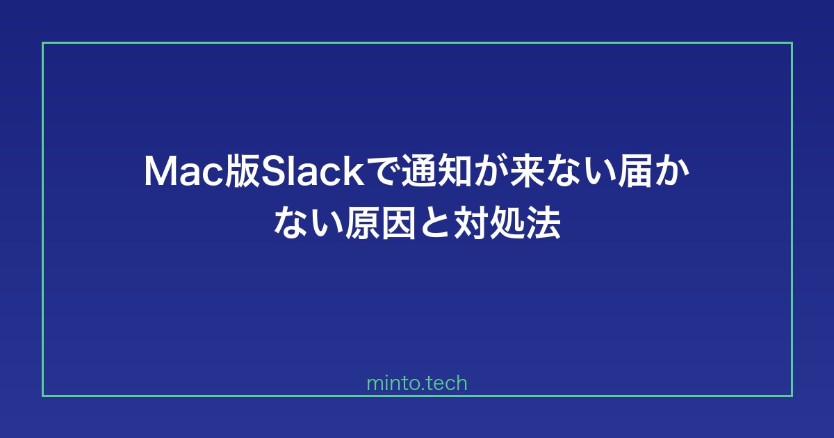 Mac版Slackで通知が届かない問題は、macOSの通知設定・集中モード・Slack内の通知設定・ステータスの確認で多くの場合解決します。段階的に確認して問題の原因を特定してください。