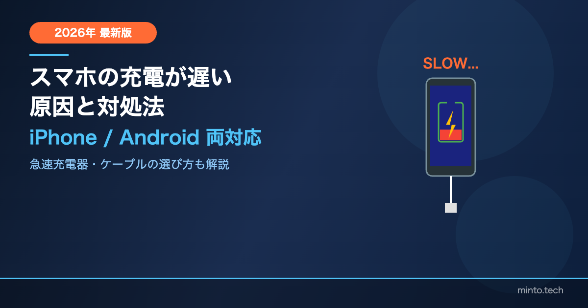 この記事では、iPhone・Android両方のユーザーを対象に、充電が遅くなる原因を8つに分類し、それぞれの具体的な対処法をステップ形式で解説します。おすすめの充電器・ケーブルも比較表で紹介しているので、買い替えの参考にもなります。