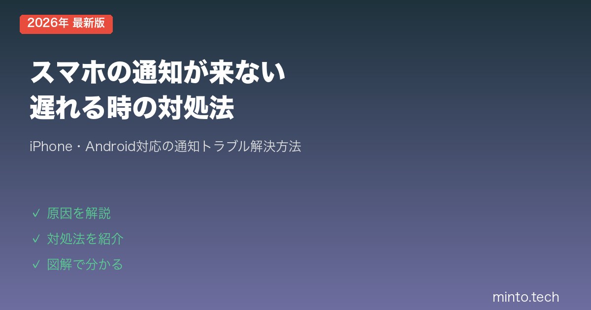 スマホの通知が来ない・遅れる問題は、設定の見直しだけで解決できるケースがほとんどです。本記事では、iPhone(iOS)とAndroidの両方に対応した対処法を、初心者の方にもわかりやすく丁寧に解説します。
